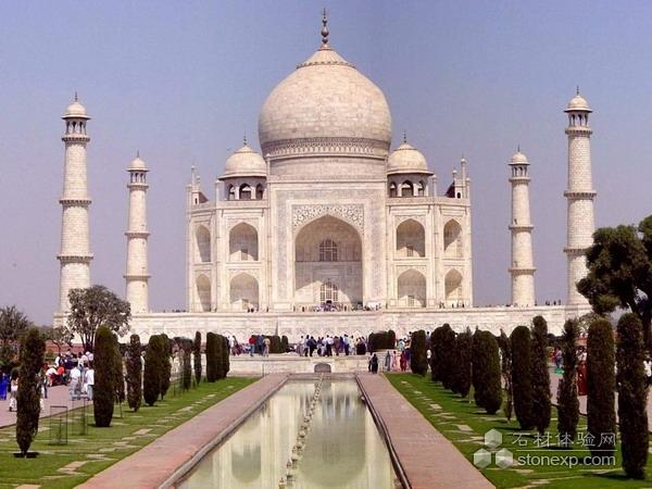 印度 泰姬陵,是印度知名度最高的古迹之一,在今印度距新德里200多公里外的北方邦的阿格拉城内,亚穆纳河右侧。是莫卧儿王朝第5代皇帝沙贾汗为了纪念他已故皇后阿姬曼·芭奴而建立的陵墓,被誉为“完美建筑”。它由殿堂、钟楼、尖塔、水池等构成,全部用纯白色大理石建筑,用玻璃、玛瑙镶嵌,绚丽夺目。有极高的艺术价值。是伊斯兰教建筑中的代表作。2007年7月7日,成为世界新七大奇迹之一。