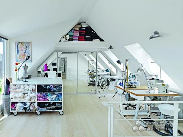 位于哥本哈根,这是一所由阁楼改造而成的双层现代住宅。开放式布局,依靠建筑结构的立柱将空间巧妙的划分为不同功能区。室内几乎所有墙面都是倾斜的,墙面与地面的夹角被用做储物空间,有效的将空间最大化。有时最简单的解决方案就是最好的,比如门厅中立柱与墙面之间用于挂衣服的铁管。整个内部环境采用明亮的白色调,典型的北欧风格,而时尚元素来自于家具和随处可见的艺术品。