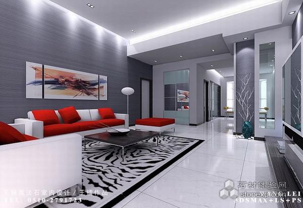 风格要明确 客厅是家庭住宅的核心区域,现代住宅中,和听的面积最大,空间也是开放性的,地位也最高.作为现代风格的客厅 ,它的气氛应该是和谐的,它的基调往往是家居格调的主脉,把握着整个居室的风格.因此,风格的统一和明确十分重要.客厅的风格可以通过多种方法来表现,其中吊顶及灯光、色彩的不同运用更能表现客厅的现代风格。