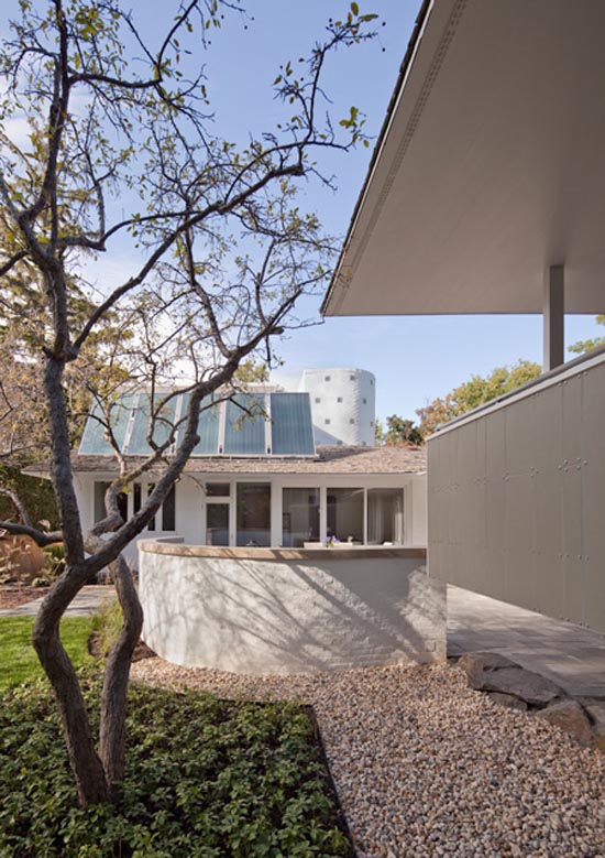 为了扩大住宅的使用面积,屋主将车库设在了地下室,上面建成了一个给孩子居住的套房。而为了与主楼相连,便有了一个用砖砌成的塔楼。而后院的青石路也是由室内的板岩地板延伸而来。整幢建筑,略有中世纪的风情,却又显得清新、自然。