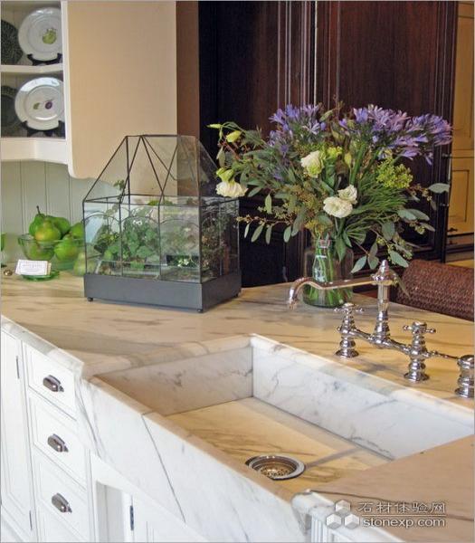 白色大理石越来越多地被用来作为高端厨房装潢的理想材料。其温润、美丽、便于护理的特点,在市场上也越来越抢手。