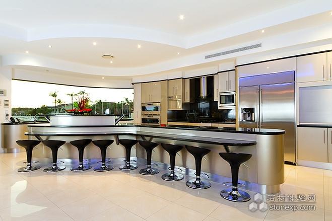 这栋住宅面积约20,300平方英尺(约1,890平方米),屋内有挑高天花板,弧形墙壁,室内为开放式布局。厨房里有一张约18英尺(约5米)长的吧台式长桌,桌面覆以黑金沙花岗岩。[page]