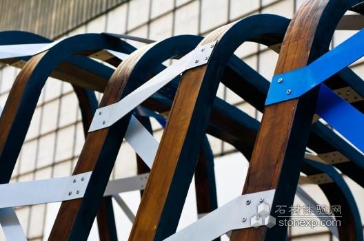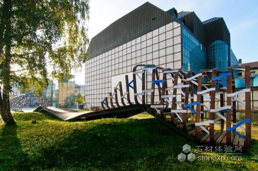 这是由uniform建筑师事务所最新完成的位于斯洛伐克马丁的一个文化亭。他们通过运用参数化模型制造软件Grasshopper实现了这个设计,同时还添加了一些弯曲和弧度,将参数定义为静止的输入元素。