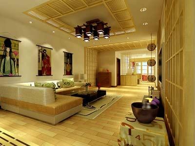 此间客厅,奢华中还掺杂着一种不一样的味道,禅意充斥着此间客厅的每一个角落,日式风格的壁画也很好的诠释了日式风格的特点。