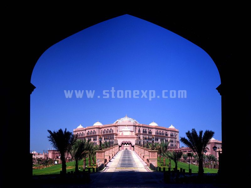 阿联酋皇宫酒店,被誉为世界最豪华、八星级的酒店,香港环球石材集团在与意大利等国际公司激烈的竞逐中,凭着突出的资源优势、技术优势、统筹大型与超大型工程石材的丰富经验而中标,成为唯一入围的中国公司。整个工程耗资逾30亿美元,耗费近150000立方米的进口大理石,而酒店的核心部分,包括总统套房、部长套房、总统及部长Lobby、VIP入口等部位的装饰石材均由香港环球石材提供。