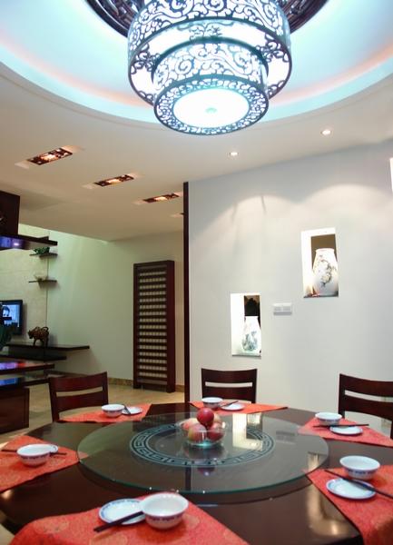 尽管这个工程完工后,并没完全达到预期效果,但也算有些小亮点。一般来讲,作中式设计比较难出新意,毕竟中式风格历经千年的锤炼,已经形成一套固有的外在表现形式,稍不留神,就会流入“俗”套。再加上现代家居早已进入楼房时代,中式家居那种讲究对称和高大空间的设计手法,也是难以体现在现代家居中式家居中的。本案例的原始建筑是一套空间极不对称的别墅,想在这样的空间里,打造出一套具有浓郁中式风格的设计,无疑还是有一定难度的。