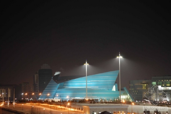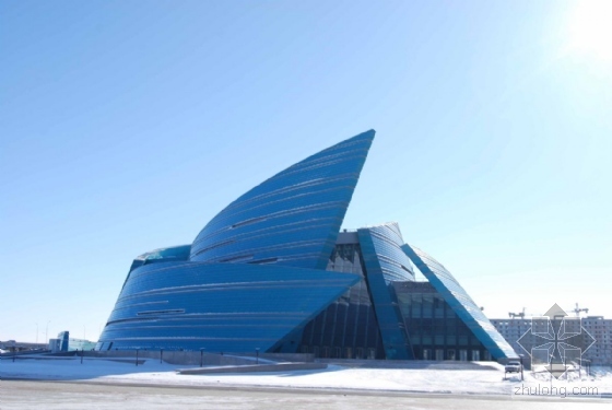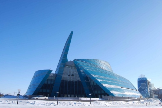该剧院——是世界上最大的剧院之一——是意大利Nicoletti建筑事务所参与的一项国际设计竞赛获奖作品。该剧院位于西伯利亚大草原中心地带,在哈萨克斯坦国家独立4年后建成,阿斯塔纳国家大剧院是哈萨克斯坦一座十年之久的新首府。